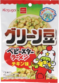 市販新商品お菓子③春日井製菓 グリーン豆ベビースターラーメンチキン味
