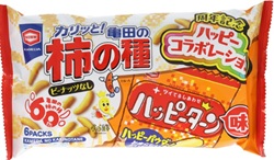 亀田製菓の発売60周年を迎えた「亀田の柿の種」と、50周年の「ハッピーターン」が夢のW周年コラボを実現。