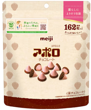 明治の「アポロシンプル包装大容量パウチ」は、おなじみのアポロチョコレートが約162粒もたっぷり詰まった、お得な大容量パックです。