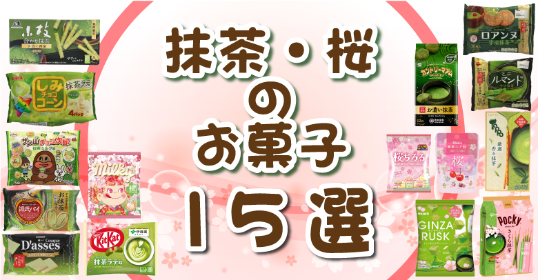 2026年コンビニ・スーパーで気軽に買える市販の「抹茶・さくら」のお菓子をまとめてご紹介いたします。