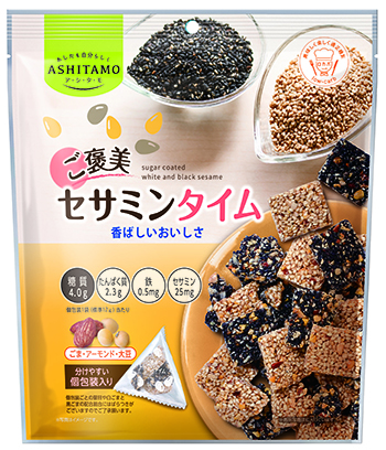 黒ごま・白ごまがぎゅっと詰まった個包装のお菓子。ごまにアーモンドや大豆を加え、特製の蜜で練り上げる事で、食感にアクセントをつけていて、ごまの風味だけでなく食感も楽しめます。2つの胡麻の風味がそれぞれ感じられてうれしいですね♪
