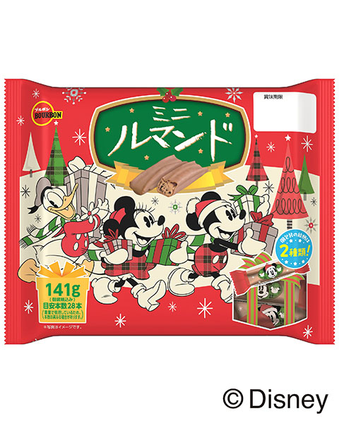 ミッキーやミニーたちがプリントされた、クリスマス限定パッケージのビスケット。