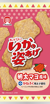 いかの姿あげの香ばしさと、かねふく明太子のピリ辛な旨みが一つになったスナックです。明太マヨの濃厚なコクが、いかの旨味をさらに引き立てています。パリパリとした食感が楽しく、おつまみにもおやつにもぴったりです。コンビニやスーパーで買えるので、ぜひ試してみてください。