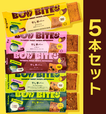現在、干し芋バーは5種類(オリジナル、デーツ、プロテイン、アップルシナモン、いちじく)のフレーバーがあります。