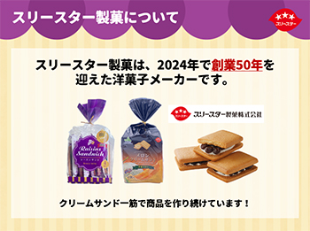 スリースター製菓さんの代表お菓子である「レーズンサンド」。なんと今年50周年を迎えたということで、商品をリニューアル!その様子についてインタビューしました。