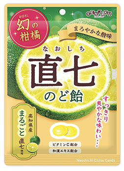 はい、「幻の柑橘 直七のど飴」は、高知県・宿毛で育った、”直七(なおしち)”というすだちの一種を使用したキャンデーです。直七は、生産量の少なさから「幻の柑橘」と呼ばれています。