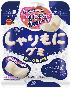 これは「しゃりもにグミ」から波及している商品だと想像はできるのですが、この擬音はなかなか面白いなと思いました。