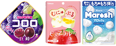 例えば、米粉を使ったやわらかい食感で話題になった「もちきゅあ」でしたが、ふにゃふにゃの食感もグミなんだ、という認識の広まりと一緒に、「とろみ~グミ」といった、とろけるようなもっともっとやわらかい食感のグミも出てきました。