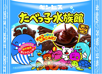 47種類のかわいい海の生きもの型のビスケットに、含浸製法でチョコを中までしみ込ませました。