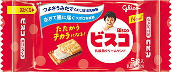 ・ミルククリームとサクッとしたビスケット。ミルクのやさしい甘みで飽きのこない、家族みんなで楽しんでいただける乳酸菌クリームサンド
