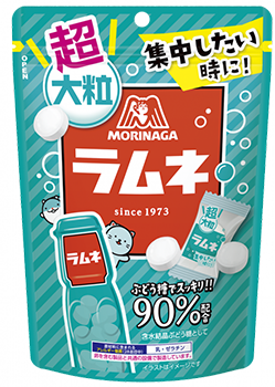 通常のラムネの約2倍サイズで、ひと粒で爽快リフレッシュできる「超大粒ラムネ」。噛んだ瞬間に広がる清涼感とシュワッとした口どけがクセになります。集中したいときや勉強中にぴったりのリフレッシュできるお菓子です!