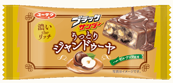 ヘーゼルナッツの芳醇な香りと、濃厚なチョコレートのハーモニーの「ブラックサンダー うっとりジャンドゥーヤ」。ナッツペーストを合わせたコク深い味わいが楽しめる冬季限定のフレーバーです。
