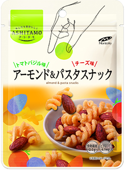 アーモンドはトマトバジル味、パスタスナックはチーズ味で、しょっぱい系とナッツ系のバランスが良く、お酒のおつまみとしても楽しめます。