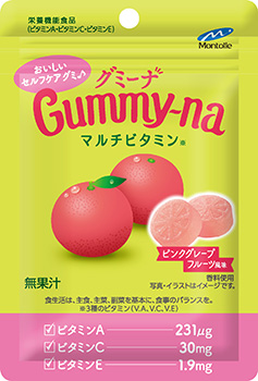 ビタミンB1、B2、B6、C、Eといった複数のビタミンを手軽に摂取できるグミです。