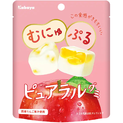 そこに一石を投じたのが、カバヤ食品さんの「ピュアラルグミ」です。外側のふかふかしたマシュマロ食感の中に、プルンとしたグミを閉じ込めた構造になっています。