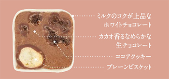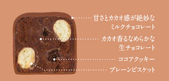 自社製のチョコレートケーキによる「しっとり感」と、ココアクッキーの「さくほろ感」が絶妙なバランス。
