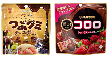 その後は「つぶグミ」や「コロロ」のチョコレートコーティングが、バレンタイン時期に期間限定で発売されていました。