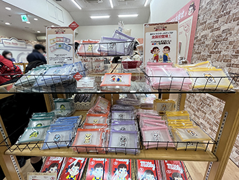 ゲートをくぐるとまず見えるのが不二家のグッズたち。