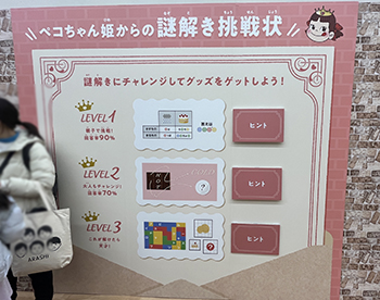 ペコちゃん姫から出される謎解きにすべて正解すれば、グッズがもらえるそうです!
