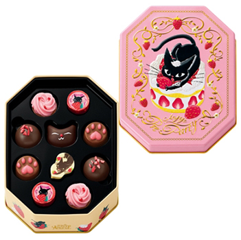 より多種類のチョコを楽しめる10個入り。ピンク一色のチョコが詰め込んであり、見た目にもこだわった内容です。ゴンチャロフのチョコは老若男女に愛される味わいで、外さない安心感があります。スーパーのバレンタイン催事場では定番中の定番。猫好きな方への本命ギフトとしても喜ばれそうです。