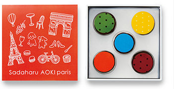 毎年「AOKI」の名を付けて発表している新作ショコラアソートです。2026年は、小ぶりのマカロンにショコラを掛けた新スタイルで登場しました。