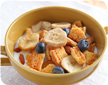3. 器に材料を全て入れ、牛乳を注ぐ。