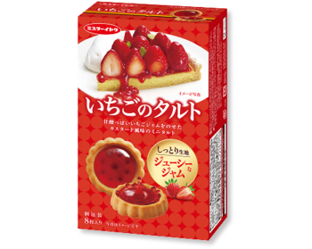 カスタード風味のタルト生地に、甘ずっぱくジューシーないちごジャムを合わせたミニタルト。タルト生地を焼いてからジャムを絞る独自製法により、フレッシュな果実感としっとりした口どけを楽しめます。
