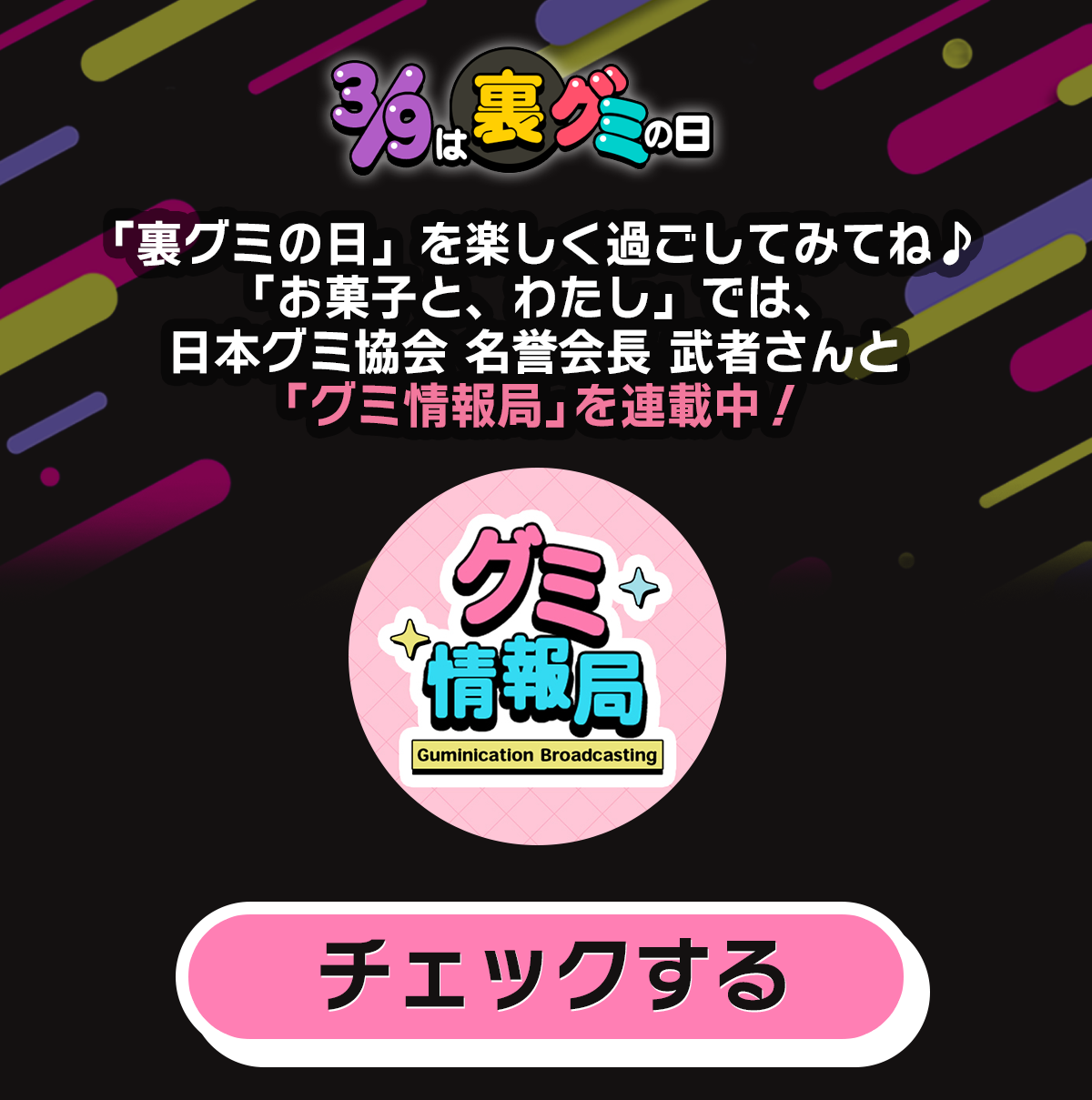 2026.02.26 【3/9は裏グミの日】グミを楽しむキャンペーン開催中!(プレゼントあり) この記事を書いたライター お菓子と、わたし 編集部 ライターのプロフィールを見る 【3/9は裏グミの日】素材の裏側にインタビュー!(プレゼントあり) 記事一覧へ 【3/9は裏グミの日】「マロッシュ」パッケージの裏側にインタビュー!(プレゼントあり)
