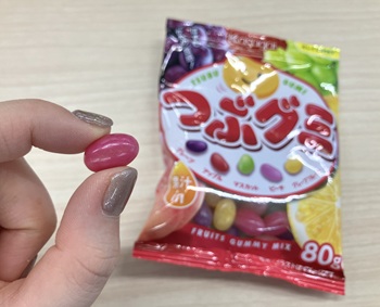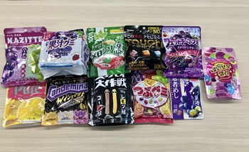 細長く薄いグミですが、しっかりぶどうの味と香りを感じます。