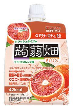 クラッシュした蒟蒻ゼリーをジューシーなジュレで包み込んだパウチタイプ。カップ型に比べて非常に柔らかく、喉越しが良いのが特徴です。