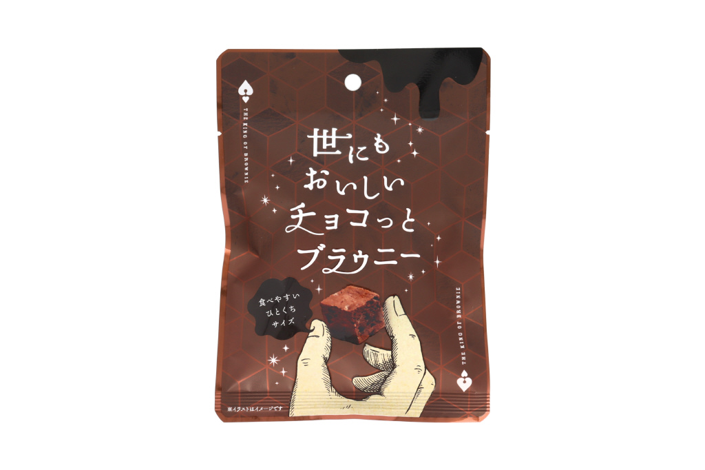 濃厚なブラウニーが一口サイズになった人気シリーズ。丈夫なチャック付きパウチなので、一度に食べきれなくても安心です。厚みのない袋タイプは、食べ終わったあとも場所を取らずに捨てられます。