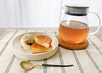鉄観音烏龍の深みのある甘すぎないおいしさです。黒糖ソースと一緒に食べると、ソースの甘さと鉄観音烏龍が合わさって、すごくちょうどよい甘さになります。これはおいしい…。