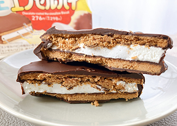 食べてみると、さっくりとしたビスケットがおいしい!"生"がつくだけあって、マシュマロはもっちりとした食感よりも、やわらかくてしゅわっとした口当たりです。エンゼルパイで感じられる酸味も再現されていて、かなり再現度が高いと思いました!