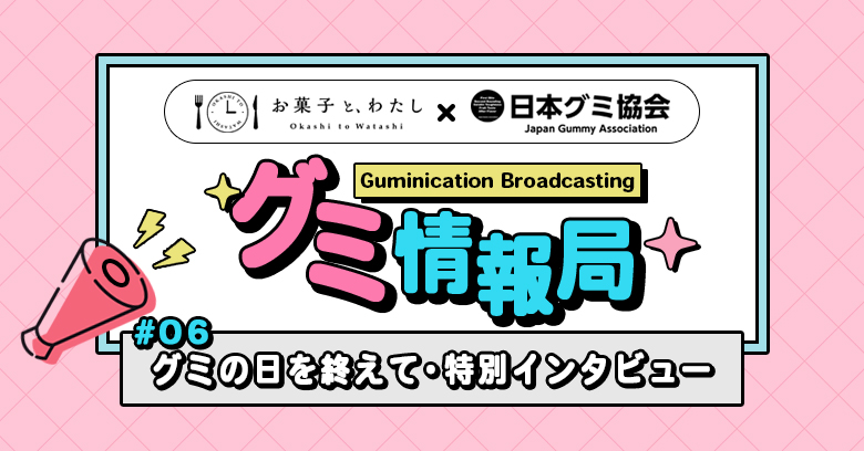 グミ情報局 グミについてのあれこれを連載してゆく新しい企画「グミ情報局」。 グミの第一人者である日本グミ協会名誉会長 武者さんにインタビューし、グミのトレンドや奥深さについてご紹介します! グミ情報局の記事一覧 【連載・グミ情報局】 #08 知られざる「パウダー系グミ」の魅力 2025.11.25 【連載・グミ情報局】 #07 「食感」と「擬音」で見る、最新グミ事情 2025.10.22 【連載・グミ情報局】 #06「グミの日を終えて・特別インタビュー」 2025.09.22 【連載・グミ情報局】 #05「日本のフルーツとグミの関係」 2025.08.19 【連載・グミ情報局】 #04「ジャンルを超えるグミの広がり」 2025.07.15 【連載・グミ情報局】 #03「ソフトグミの今までとこれから」 2025.06.17 【連載・グミ情報局】 #02「ハードグミの魅力」 2025.05.20 【連載・グミ情報局】 #1「グミはグレープ味から始まる!?」 2025.04.15